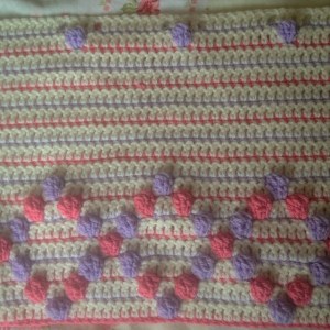 On Friday night I dreamt that my cousin’s wife had, had a baby boy. Â This would have been a good thing ’cause I was making a blanket for a girl – this might have been my sub-conscience trying to ease my guilt. Â So although the plan for the weekend was to read I put it on hold and picked up hook & wool.
