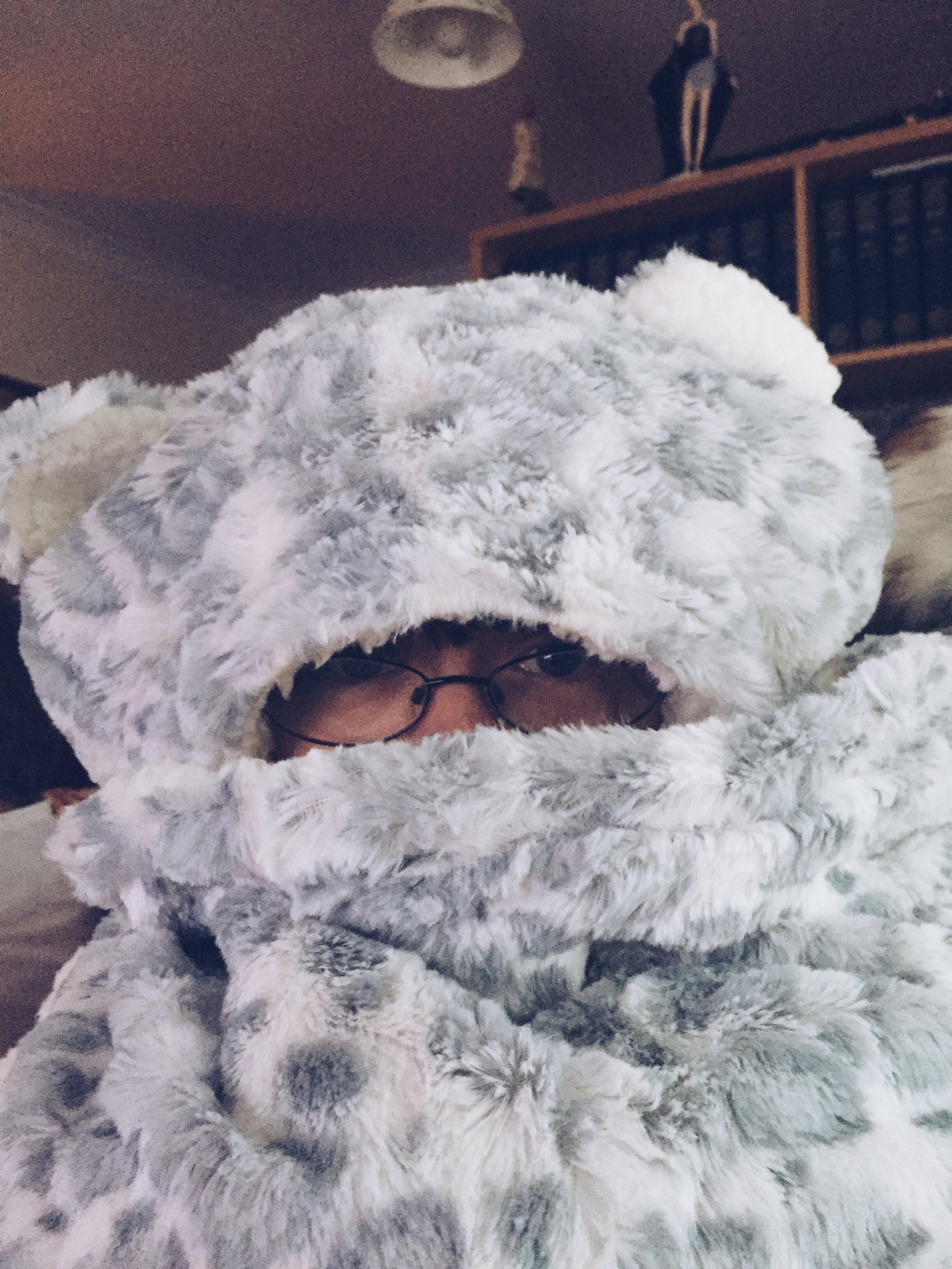 Yesterday I bought a “thing” – it’s a throw with a hood and mittens.  It’s one of the softest things I have bought in a long time (normally it’s balls of wool).  I spent most of the afternoon offering my purchase around for people to feel – it really is that soft!